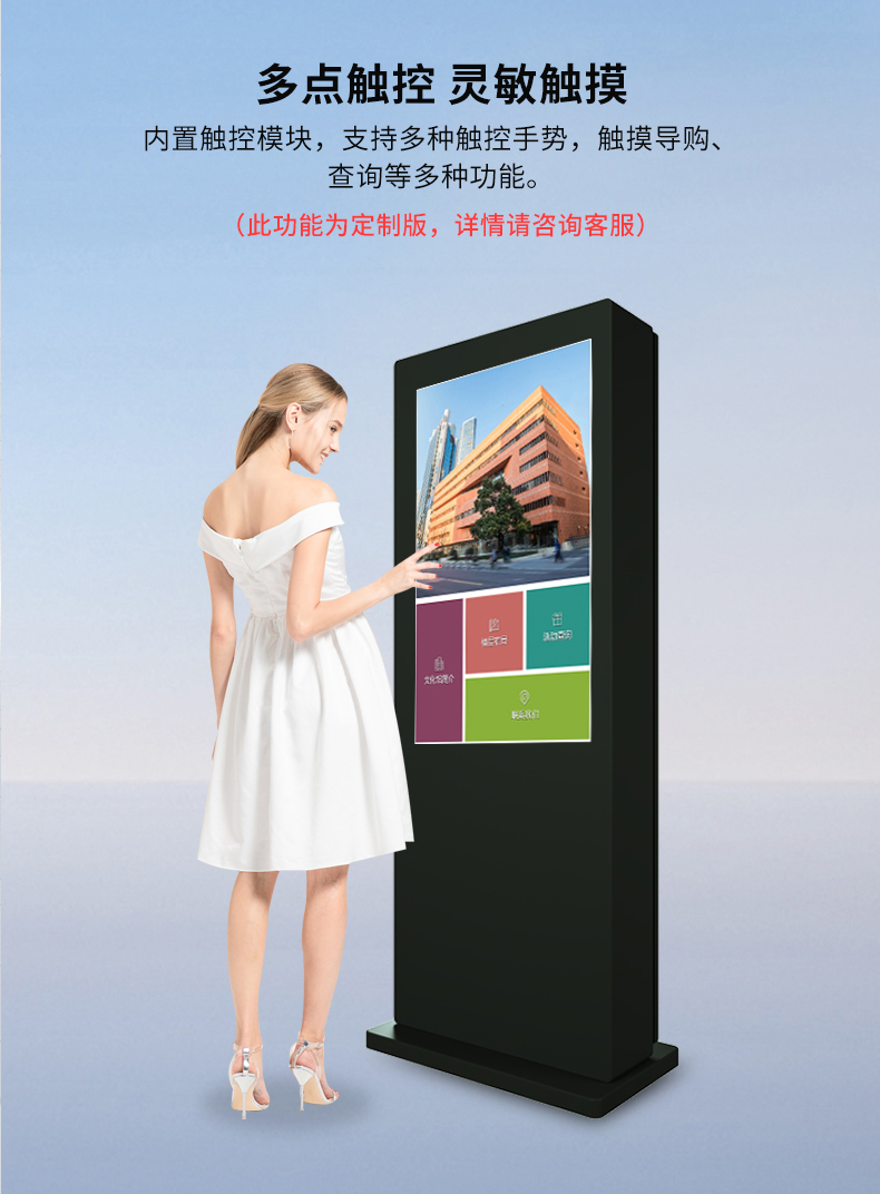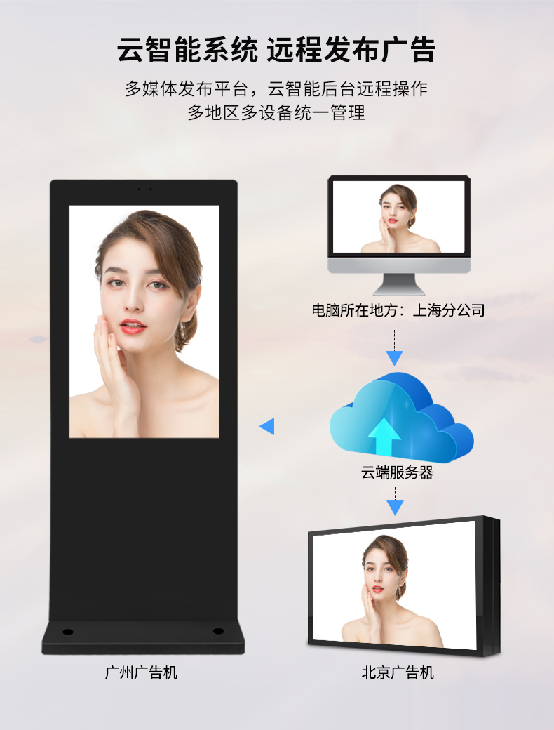 Android系统、LG原装IPS商用屏、450亮度、支持远程音视频发布、支持7*24H工作