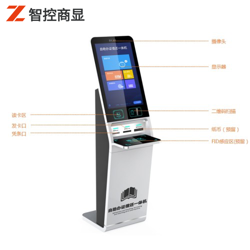 自助办证机是一种代理人工进行办证业务的设备,读者可以通过它自助办理图书馆借书证等。