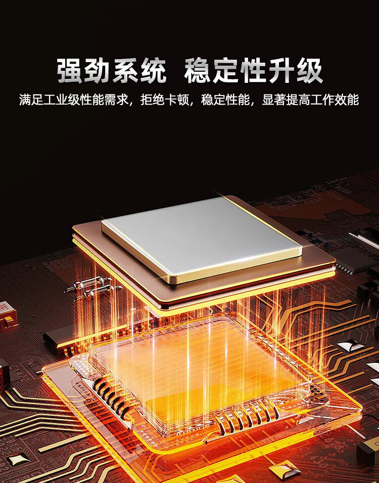 全封闭无风扇防尘设计,通过铝合板与金属后壳散热,低噪音散热效果,24 小时持续运行也毫无压力。