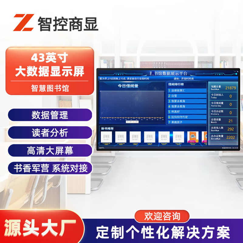 【简介】借阅机触摸屏书香军营阅览室大数据显示屏【系统】国产系统 + 飞腾处理器【优势】纯国产化智慧图书馆、可无网内网运行,保护信息安全【尺寸】43~75 英寸【售后】全国联保、系统对接、上门安装、一对一技术指导